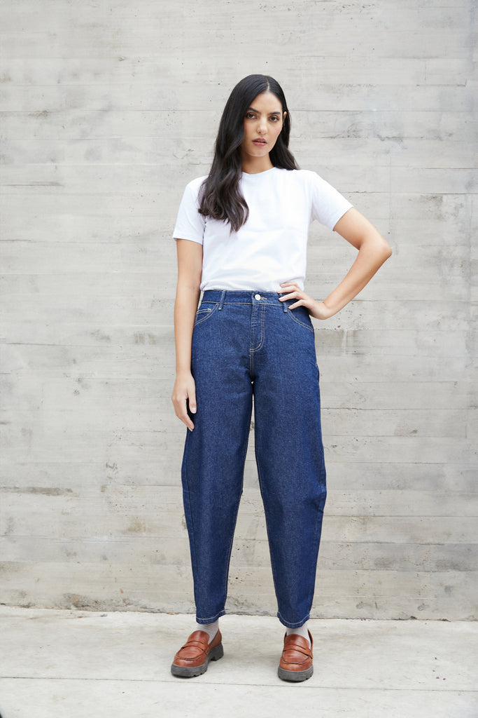 Nuestro nuevo jeans Barrel Lazzo, una nueva silueta de jeans con personalidad. Creamos nuestra versión más limpia y clásica de esta tendencia con una silueta armónica: volumen donde favorece, estilizando tu figura sin abultar en lugares indeseados.