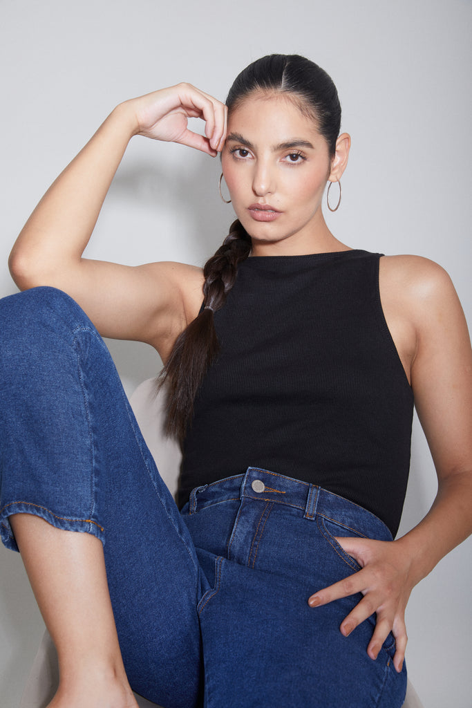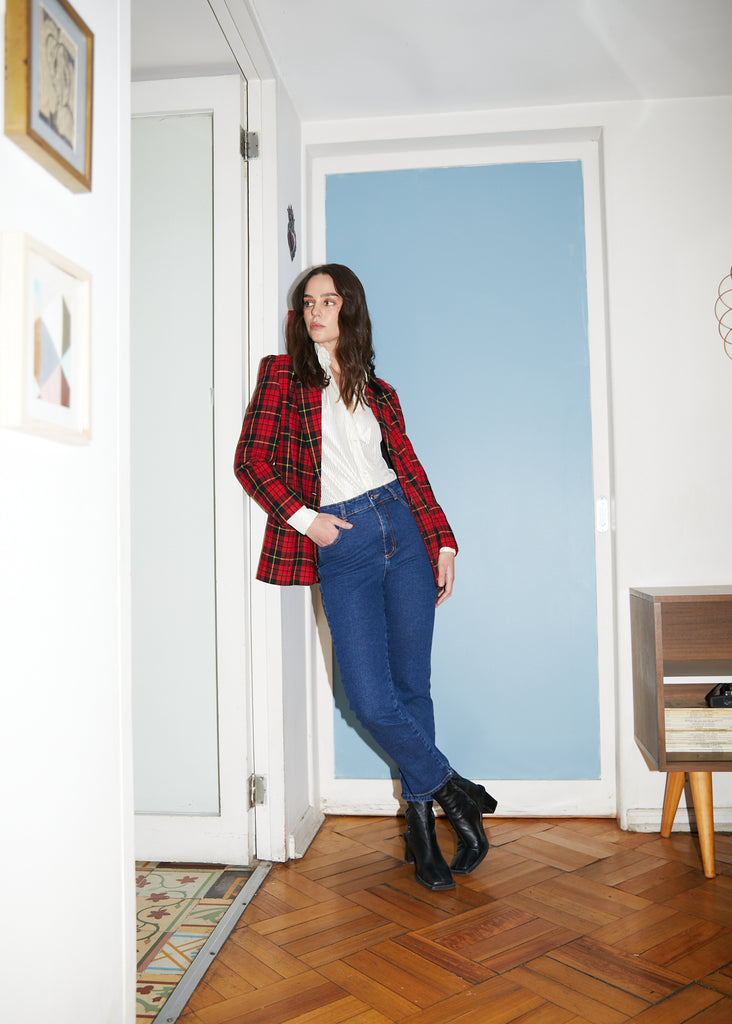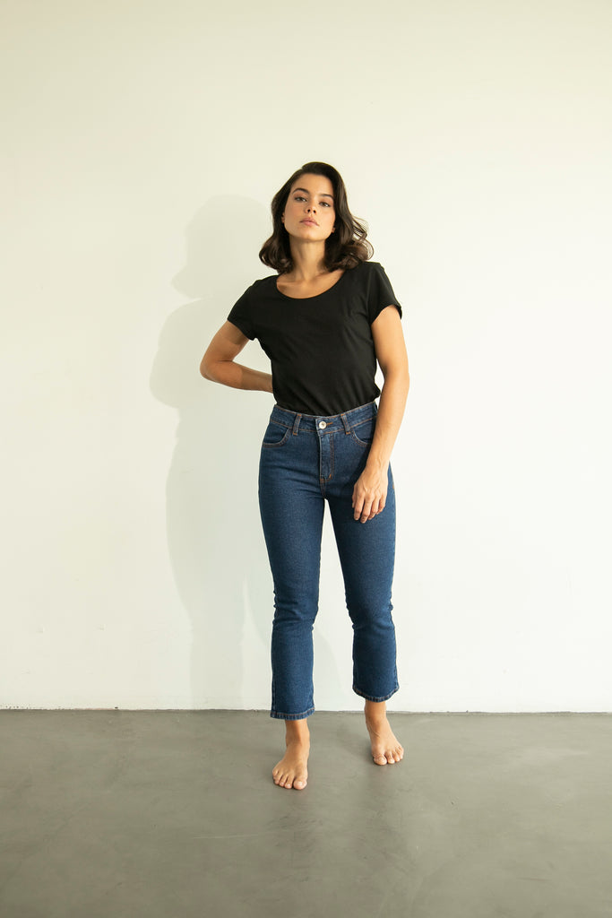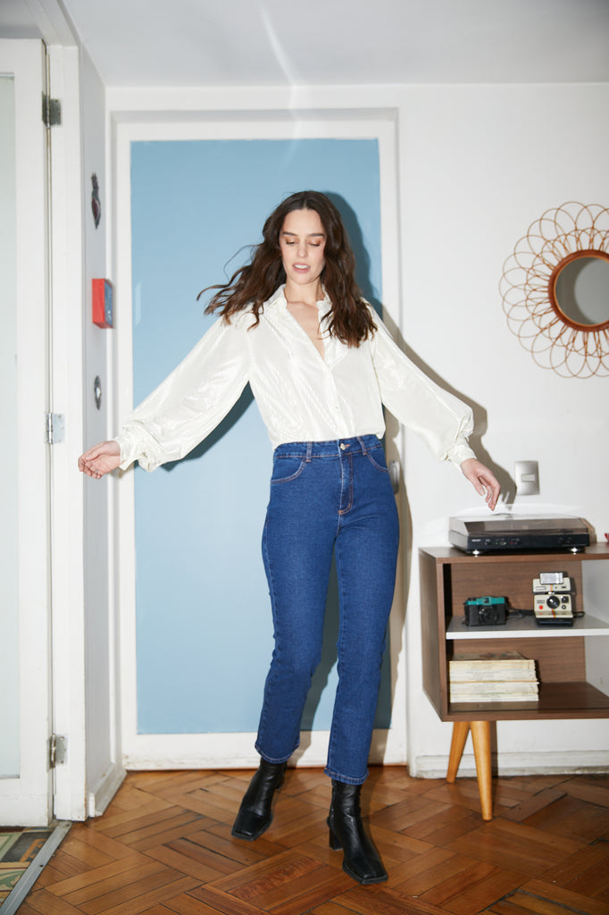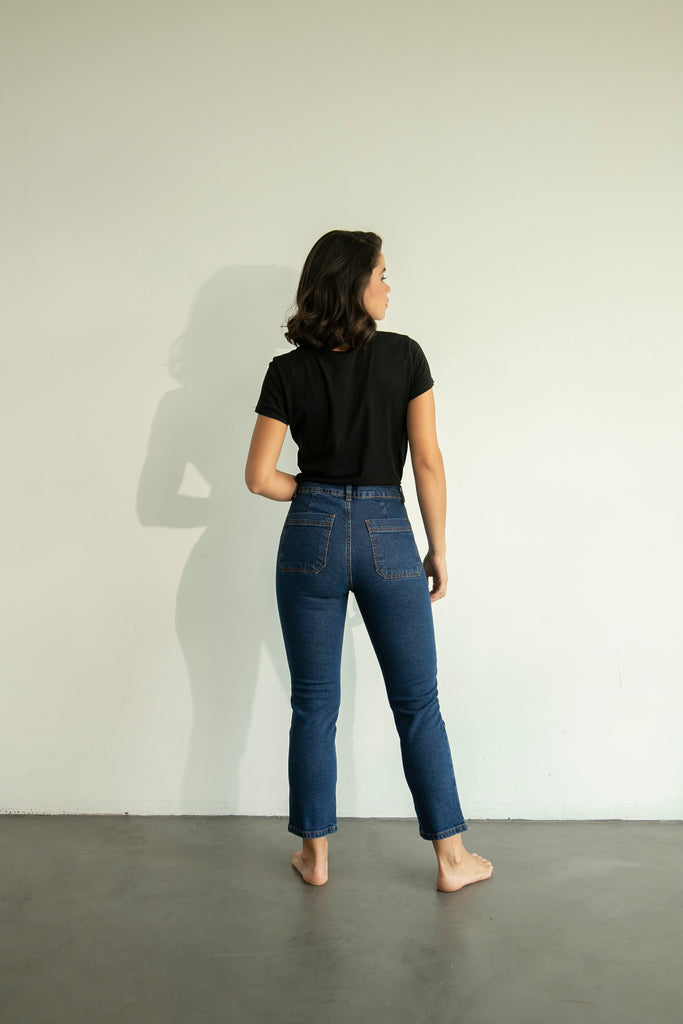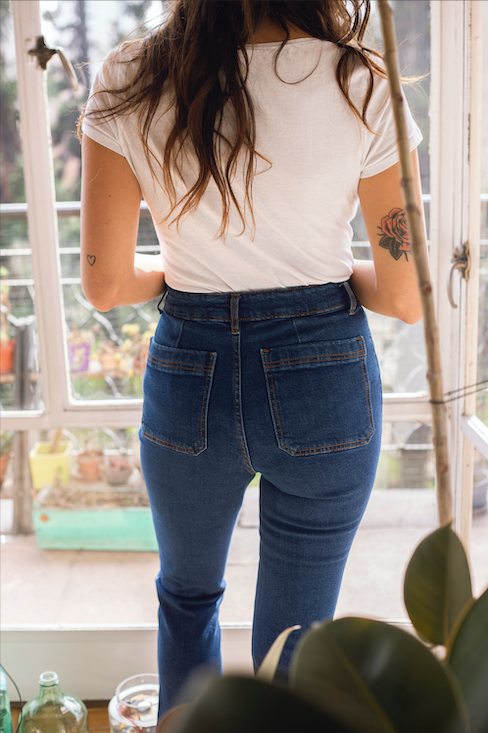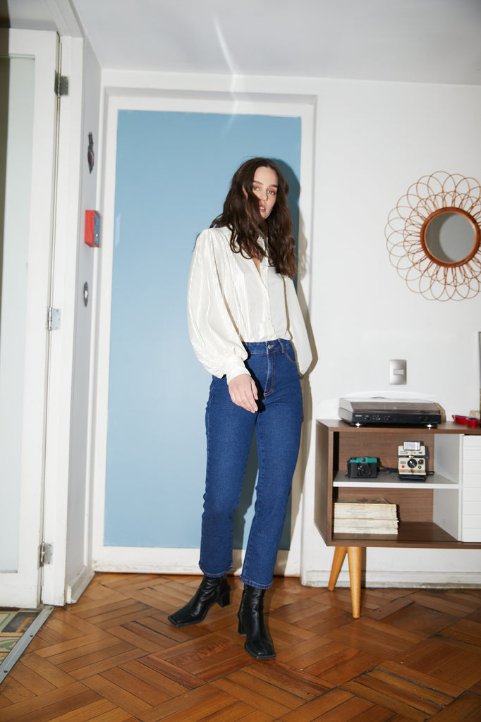 Nuestro Kir es recto, tiro alto, con look vintage pero sin la rigidez que lo caracteriza. Es suave, flexible y muy cómodo.
