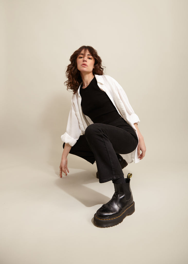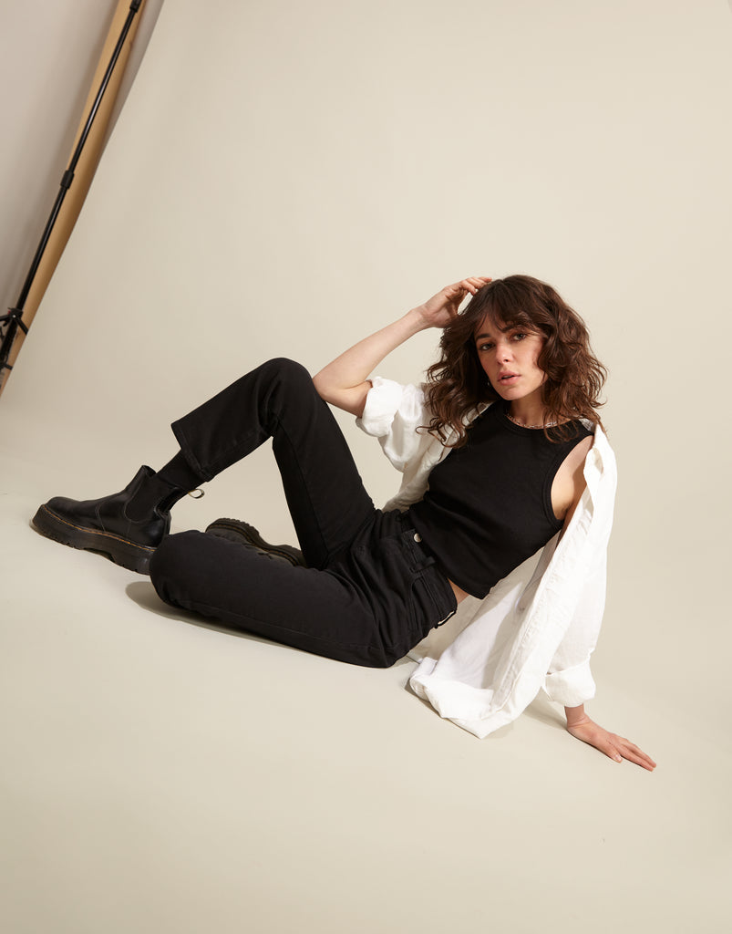 Kir Optical Black, es un tono negro sólido. El jeans recto que no dejarás de usar. Tiro alto y el calce de siempre.