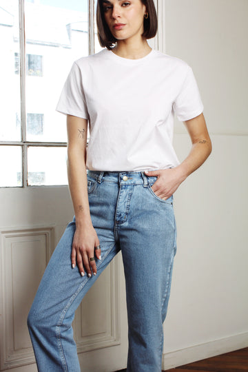 El lavado light es un tono de denim azul claro y suave, con un look más relajado y vintage. Se caracteriza por tener un acabado desgastado de forma pareja, que resalta la textura del algodón y aporta un aire casual, fresco y fácil de combinar. Un aire noventero que nos encanta.