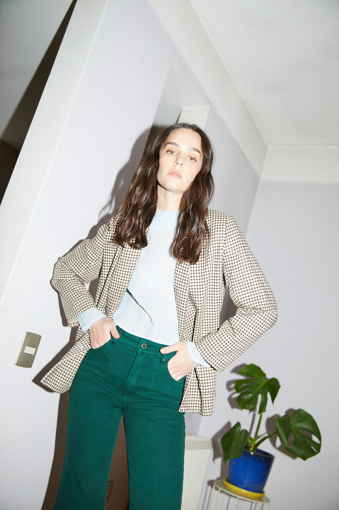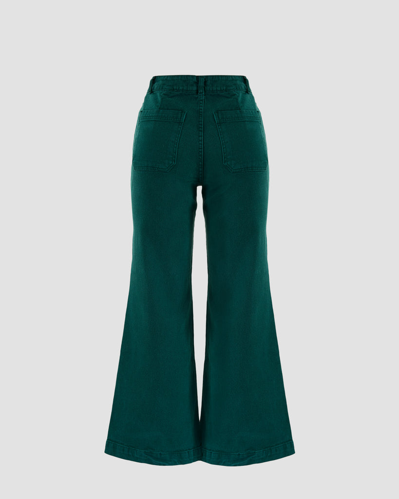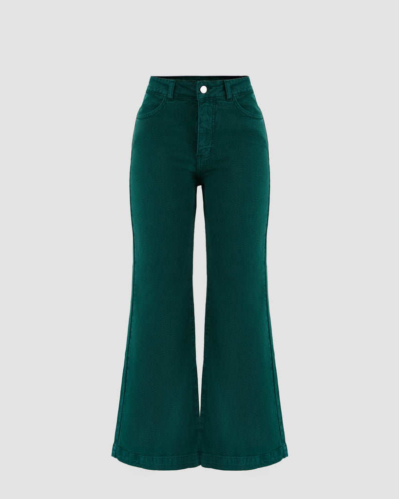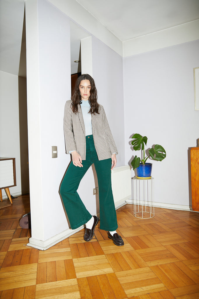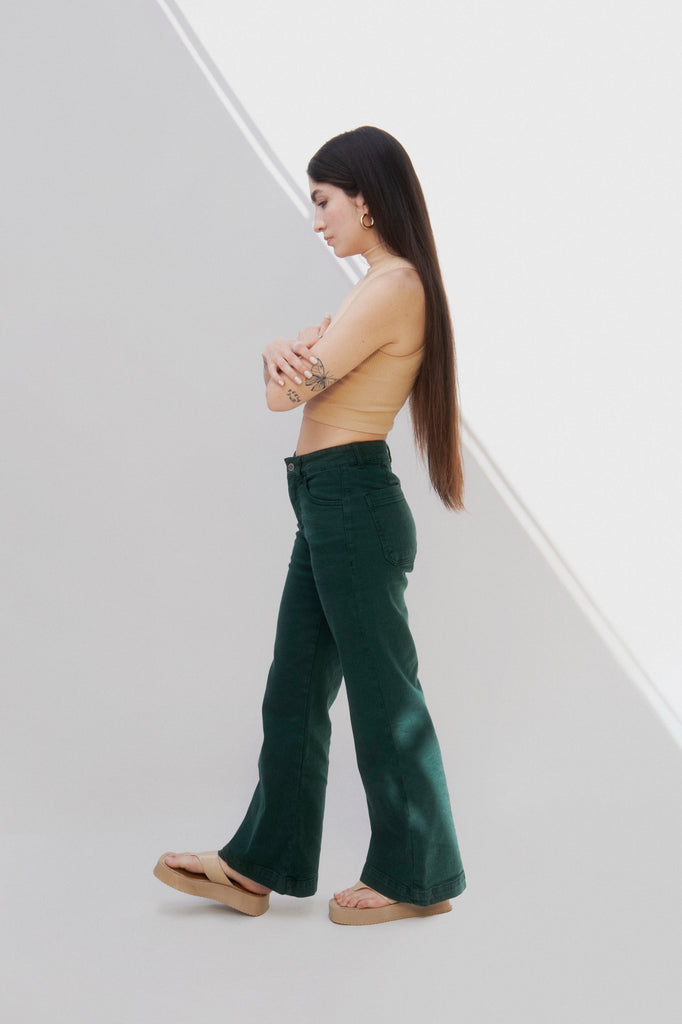 Tiro alto, ajustado en la cintura y cadera para un calce perfecto y pierna acampanada, con las vibras setenteras que tanto nos gustan.