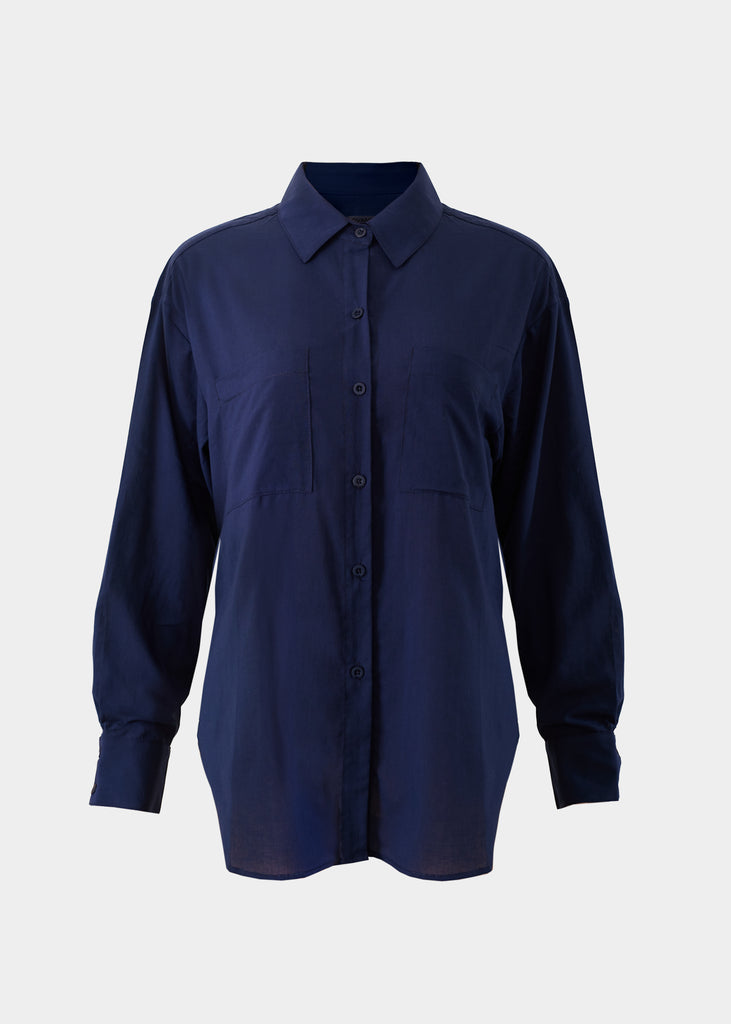 El calce es suave y relajado, con un largo curvo muy favorecedor y mangas ideales para usar arremangadas o extendidas. Funciona increíble con shorts, jeans, bermudas o como capa ligera sobre traje de baño.