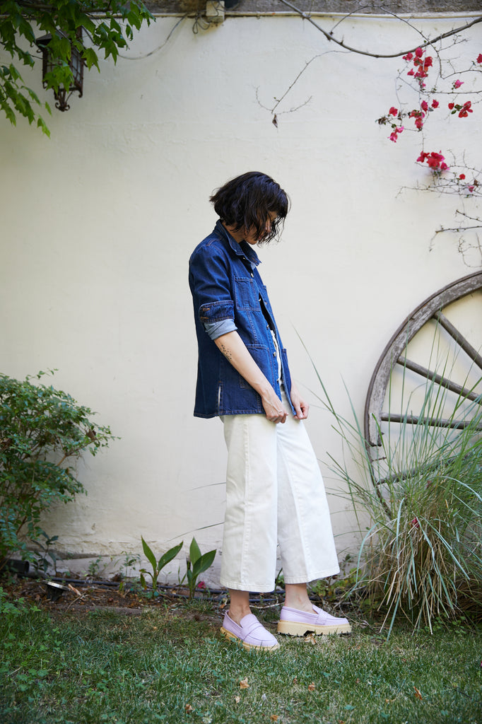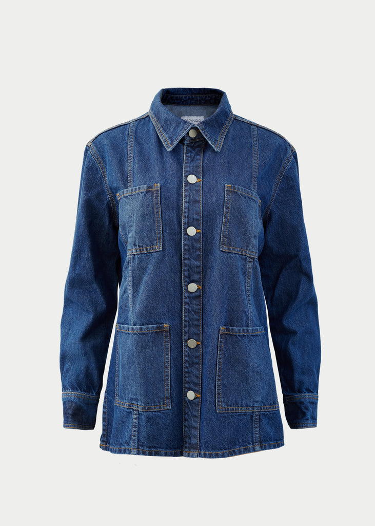 Cuello en punta, frente clásico con botones, cuatro bolsillos parche, fit relajado y corte cuadrado con talají en los costados. ¿La mejor parte? Se ve bien con todo.